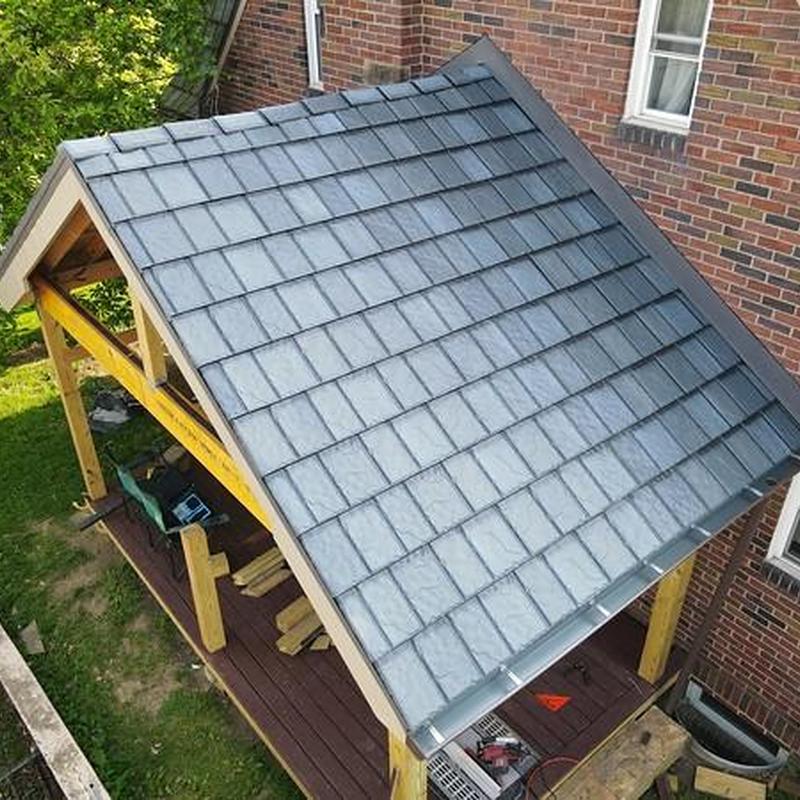 247 Home Remodeling installed a new steel country metal roof and gutters on a porch in Canonsburg, PA. The roof provides strong weather resistance with minimal upkeep. The new gutters improve water drainage and help protect the structure from moisture damage.