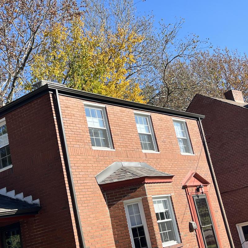 247 Home Remodeling installed new gutters and downspouts at a home in Pittsburgh, PA. The system improves water drainage and directs rainwater away from the foundation and siding, reducing the risk of damage.